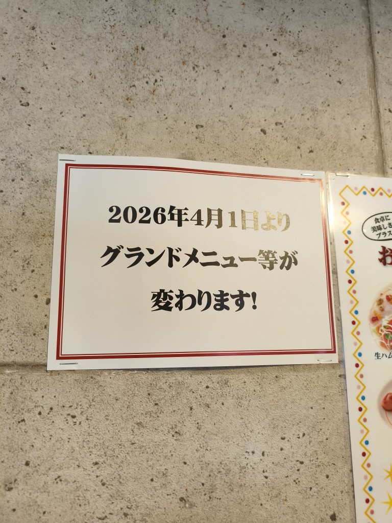 デカデカと貼られた 「グランドメニュー刷新!」 の文字。